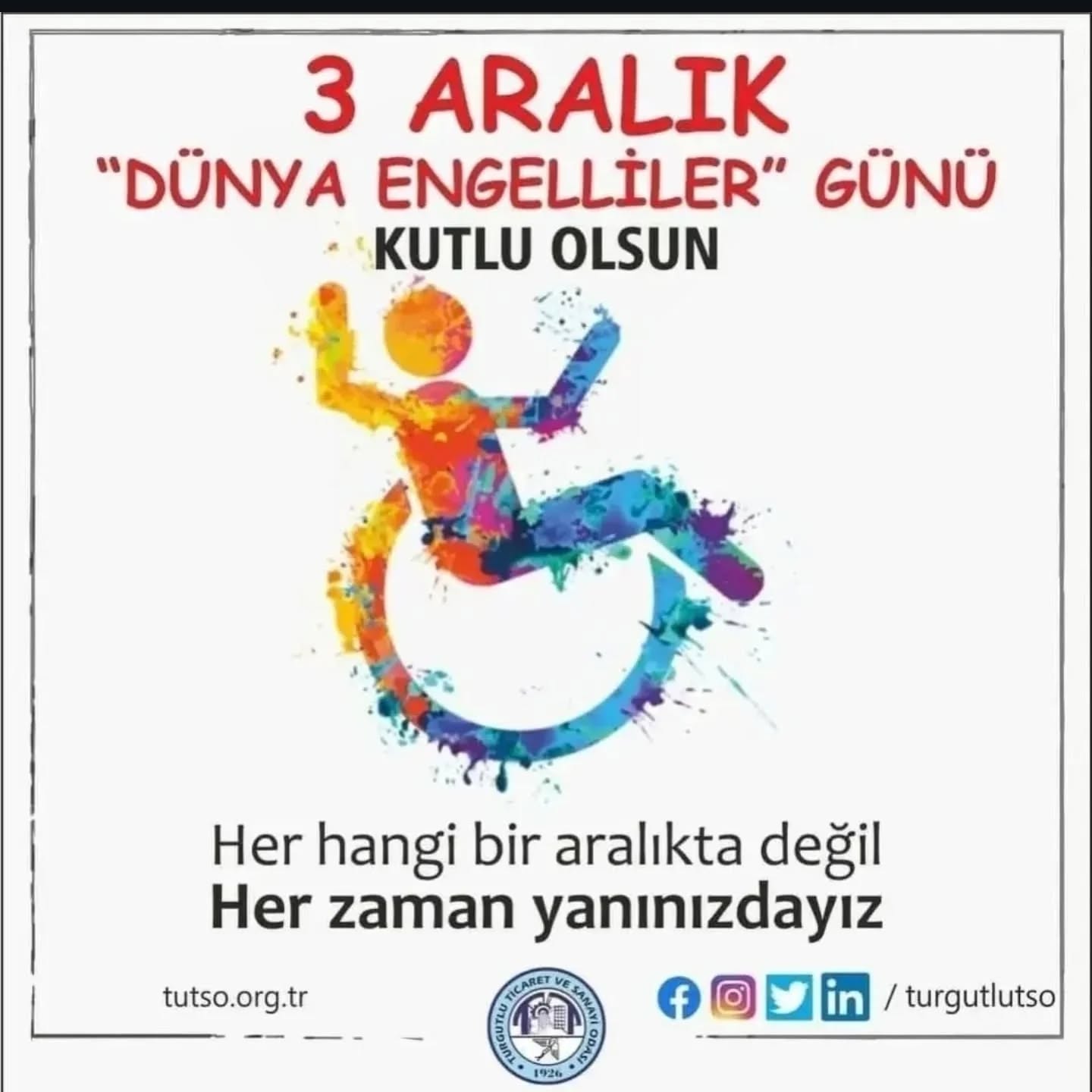 TUTSO Başkanı Faruk Aydın’dan 3 Aralık Dünya Engelliler Günü mesajı